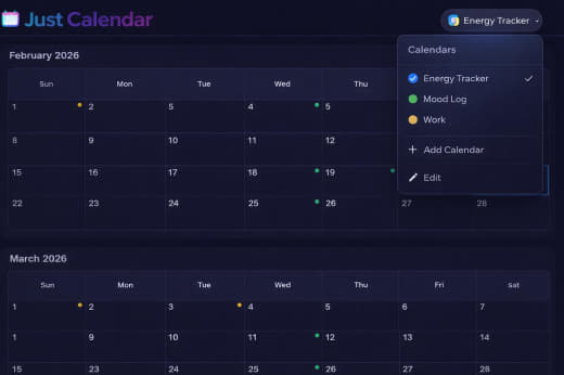 /root/justcal/index.html.Dark mode / Light modelocalStorage (justcal-theme)npm run build passed in ~/justcal